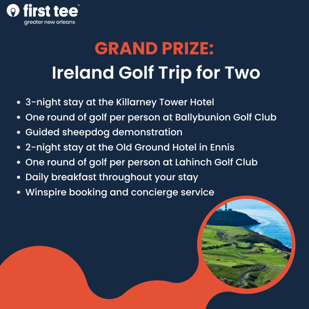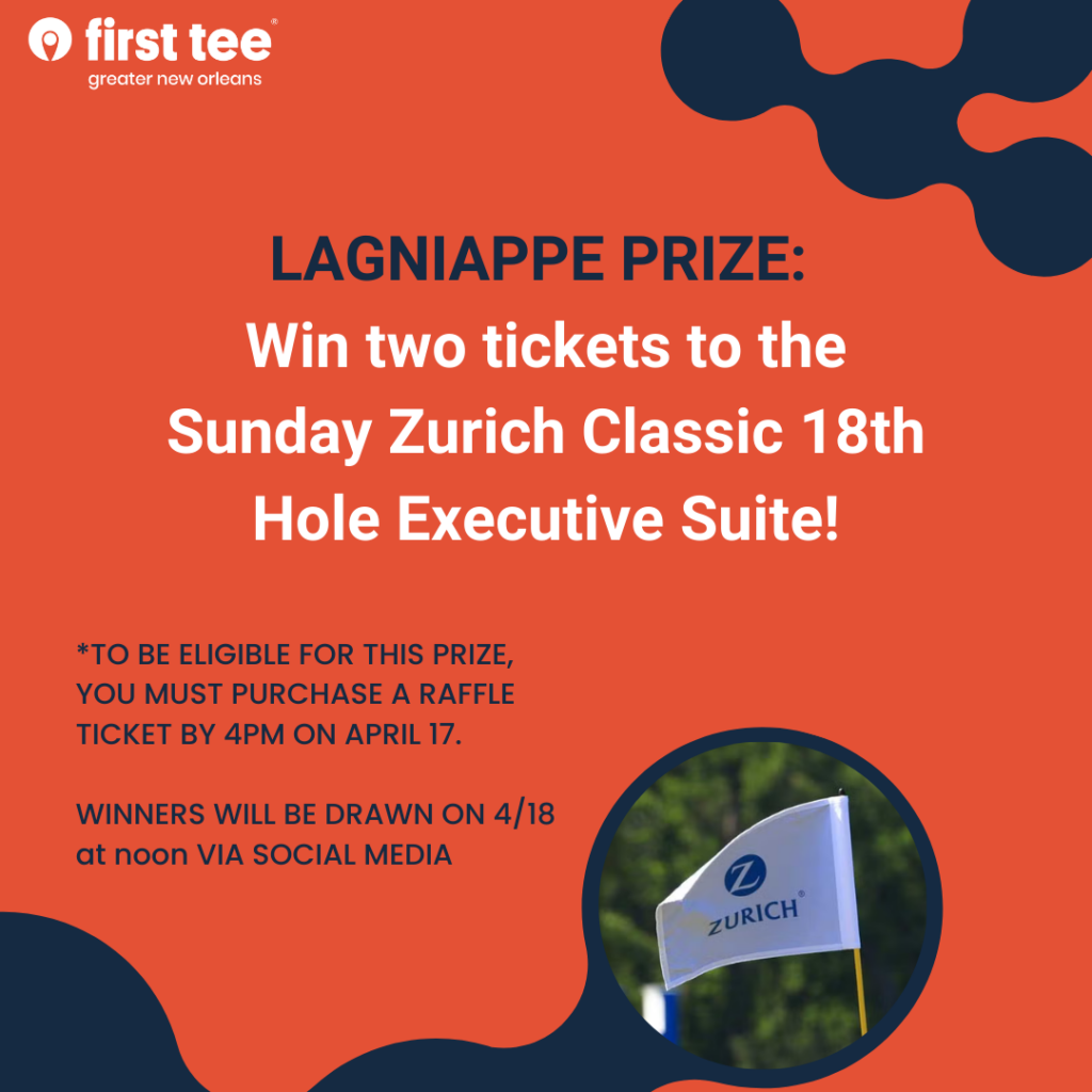 Win exclusive trips, sports memorabilia, two Zurich Classic tickets, and premium golf gear. Tickets are $100 and directly support First Tee – Greater New Orleans youth programs, and every purchaser receives a First Tee headcover.